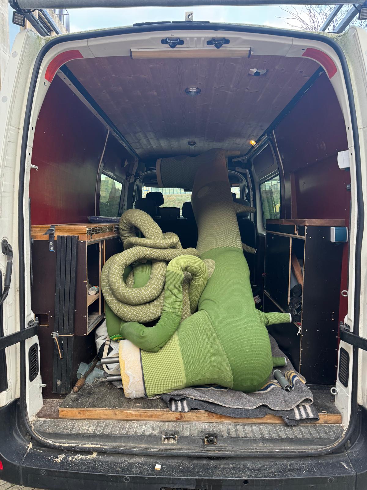 For a local library I teamed up with Dave van Rossem to work on a special art piece. We restored a big fabtic dinosaur. It was part of the kids departement in the library.